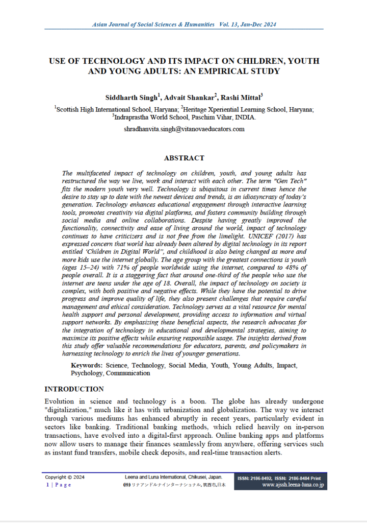 My co-authors and I recently published a research paper, and I wanted to share a few key takeaways right here on the blog. Our study, “Use of Technology and its Impact on Children, Youth and Young Adults,” explores the complex relationship my generation—often called “Gen Tech”—has with the digital world.